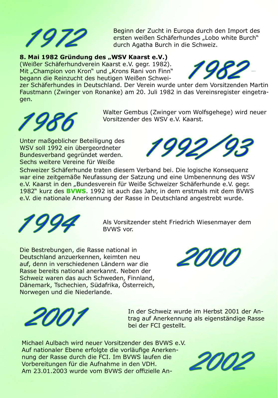 Der BVWS wurde im Jahre 1982 gegründet. Damit ist er sogar auf europäischer Ebene einer der ältesten Vereine für Weiße Schäferhunde.